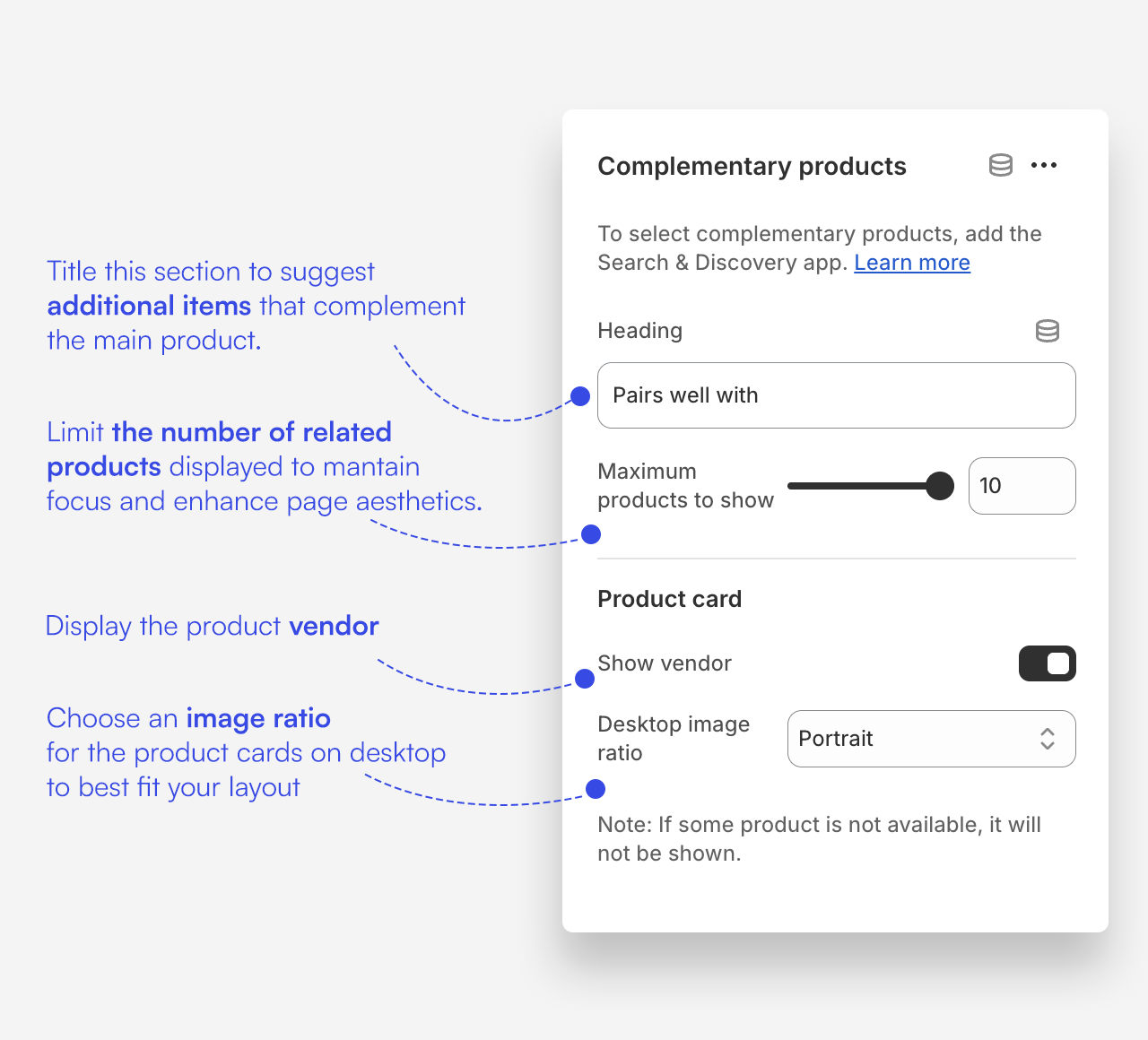How to set complementary products using the Shopify Search & Discover app?