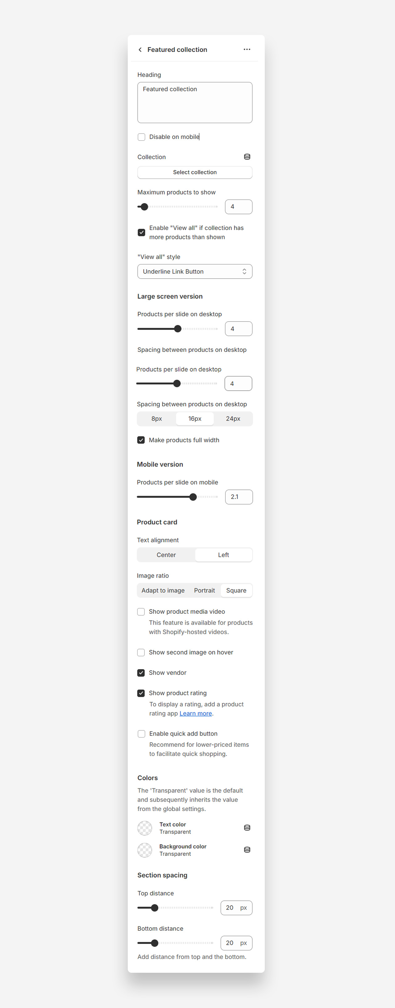 - Heading: Set the title for the featured collection.