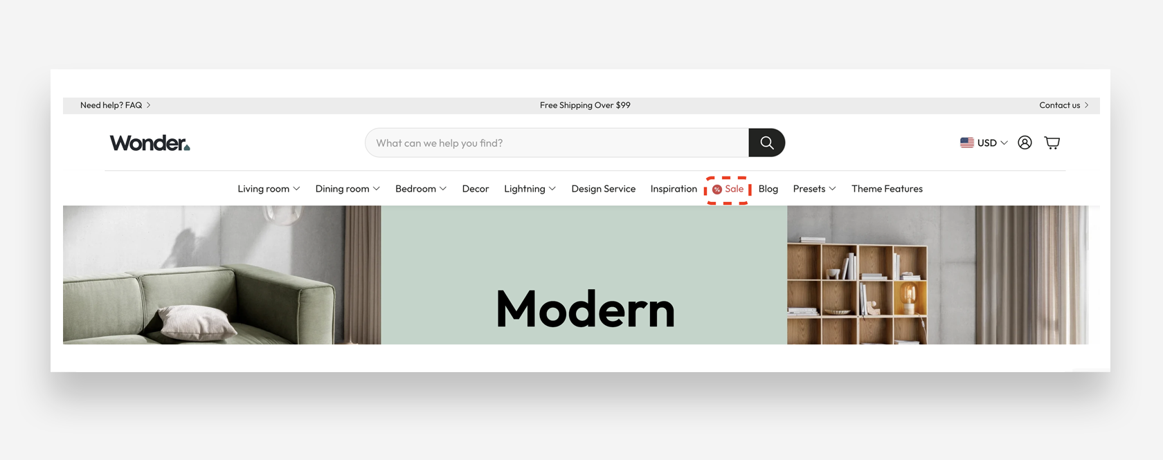 - Menu items to highlight: Enter the names of the menu items you want to highlight, separated by commas (e.g., Sale, New Arrivals). The names must match exactly the link names used in your navigation menu.