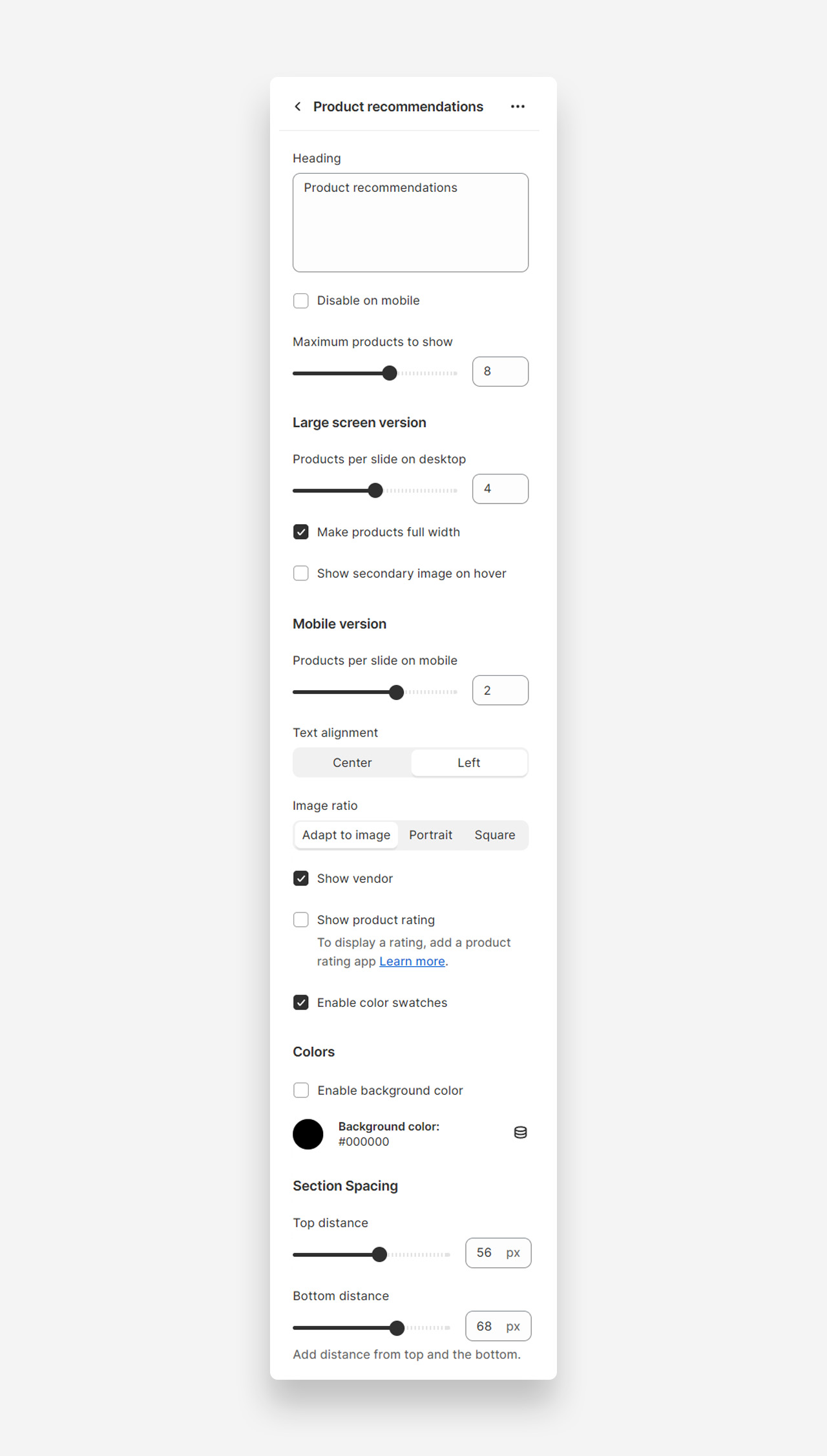 - Top Distance : Slide to adjust the space above the product recommendations, providing breathing room and a clean separation from other content.