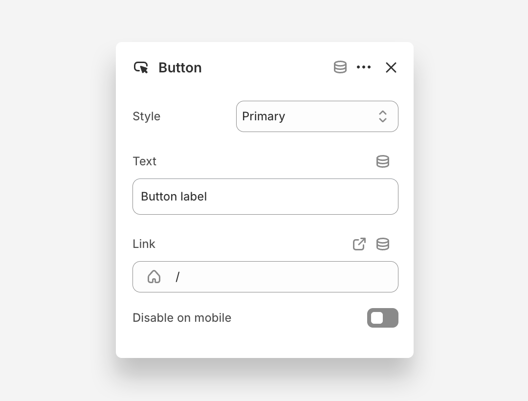 - Link: Assign a URL or page link to the button.