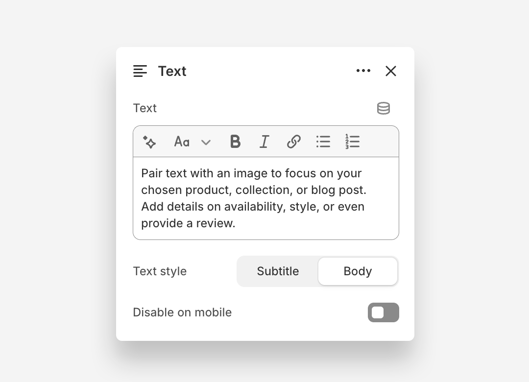 - Text style – Choose "Subtitle" or "Body" style