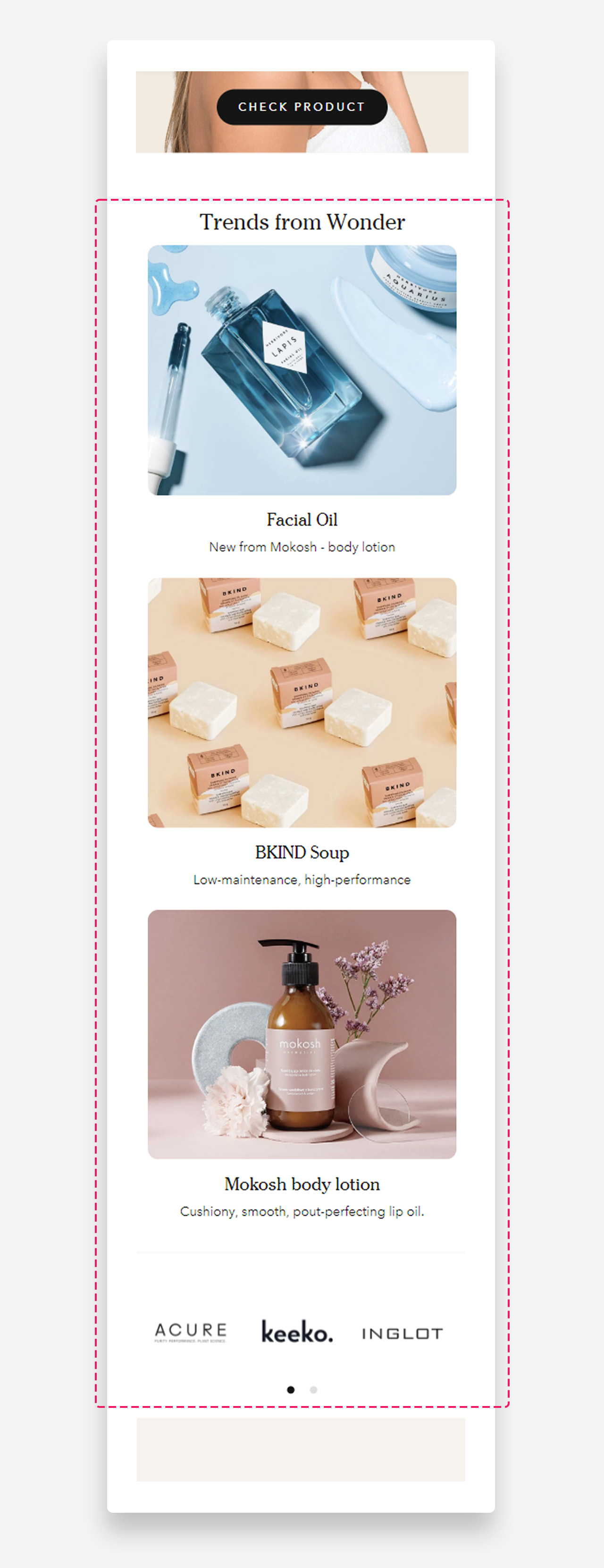 - Button : Add a button with customizable text, linking to a relevant page or product to encourage customer interaction.