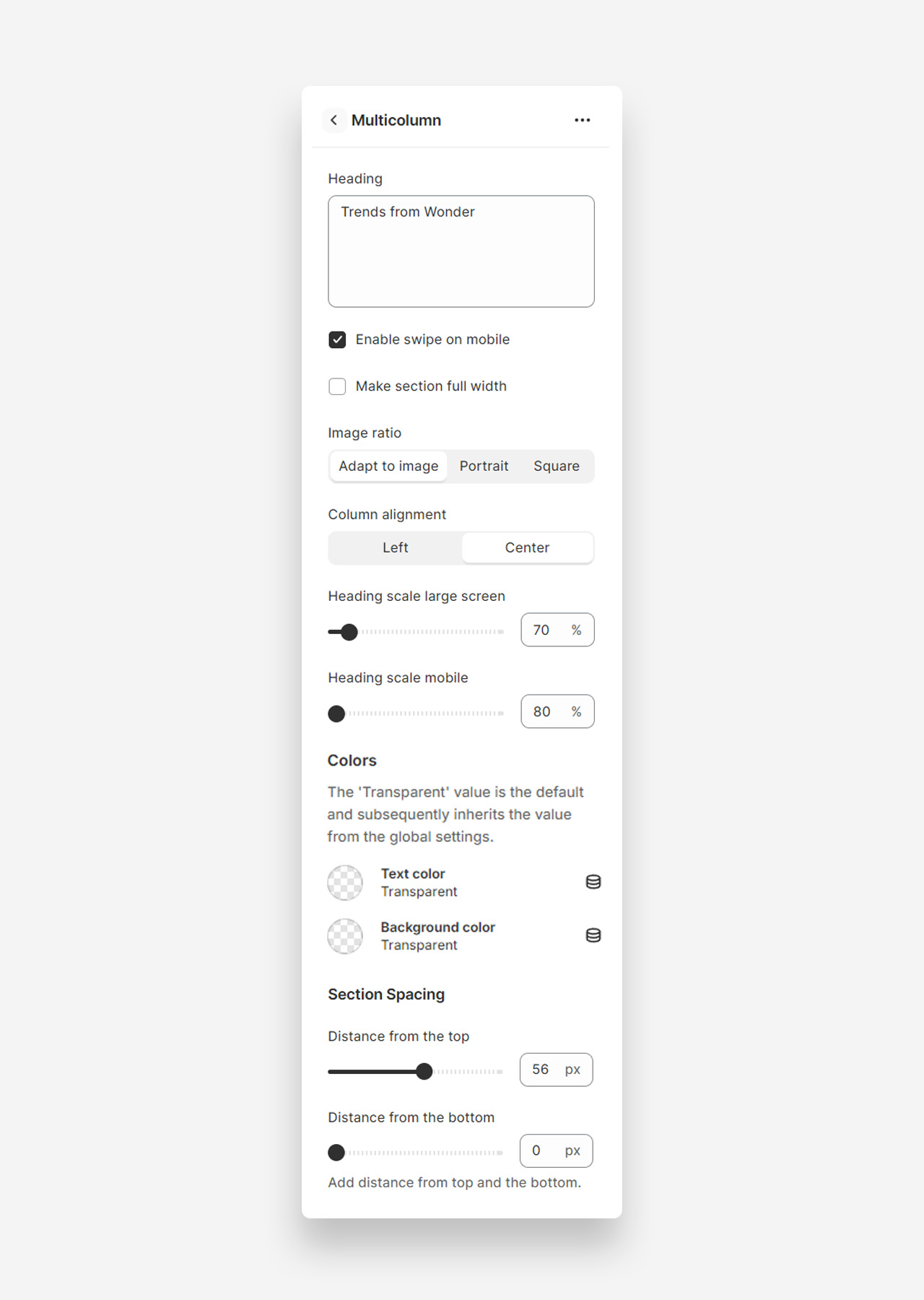 - Make section full width: Enable this setting to make the multicolumn section span the entire width of the container.