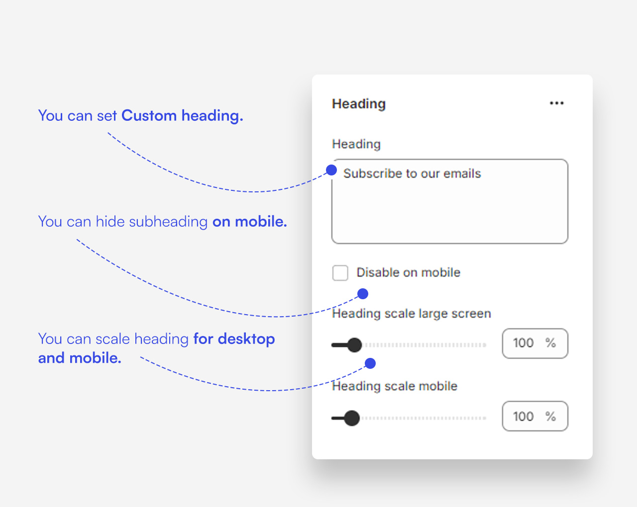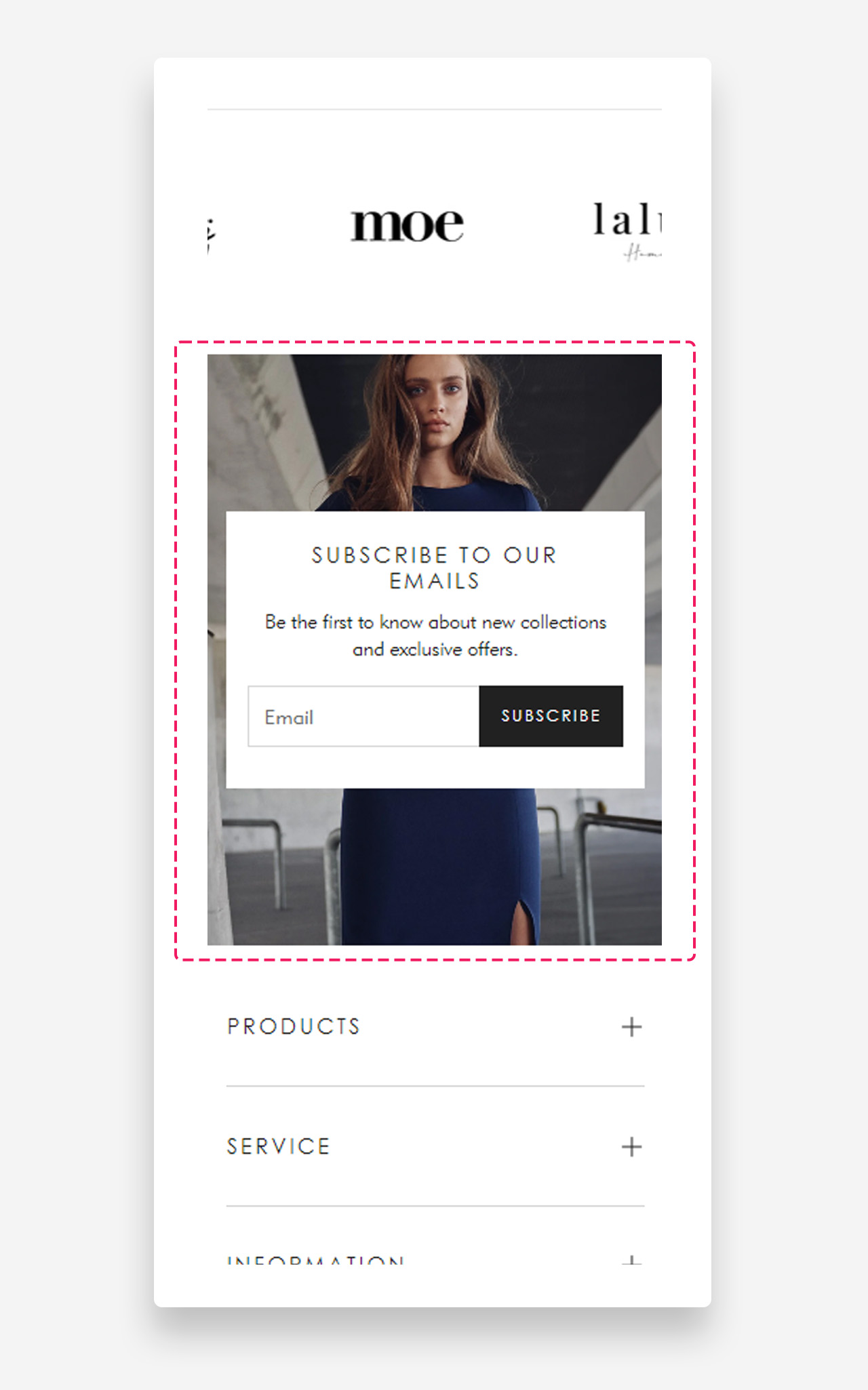 The "Newsletter with image" section is a visually engaging element designed to grow your subscriber base. Featuring a customizable form to subscribe to your newsletter, it allows you to set a custom heading, text, and button. With the option to add a background image and personalize the color of the text container and text, this section seamlessly integrates with your store's aesthetic while encouraging visitor engagement.